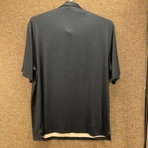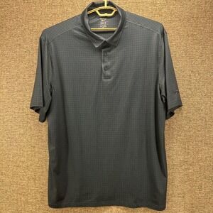 Elevated style defines this Reebok golf polo shirt. A subtle geometric pattern adds visual interest, while the classic polo design ensures timeless appeal. The shirt features a three-button placket and short sleeves, offering a comfortable and versatile fit. Its lightweight construction promotes breathability, making it ideal for active wear or casual outings. A snag/scrape is present at the lower back by the hem, doesnt show up when tucked in or from a different angle