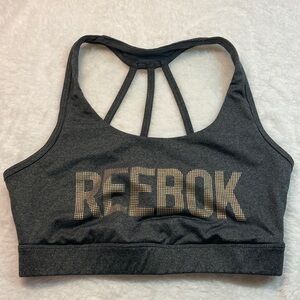 Reebok Sports Bra Small Grey Quick Dry Back Graphic “Reebok”