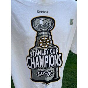 Reebok Stanley Cup Champions 2011 Boston Bruins T-Shirt White Stained Sports