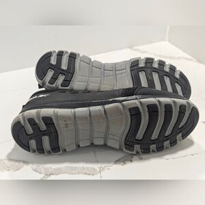 Reebok Sublite Cushion Work Alloy toe safety RB4041 Men Work Slip-On Black size 15 Wide sneakers shoe. Small rip on the inside liner. Sublite Cushion Work achieves maximum lightness and flexibility in a convenient slip-on work shoe. With deep flex grooves, the Sublite foam midsole reduces weight and allows for greater range of motion. Rubber pads provide traction at heel strike and forefoot takeoff while minimizing weight. Anti-scratch properties protect your work environment from any shoe markings. A MemoryTech Massage 2.0 footbed adapts to the unique contours of your foot.