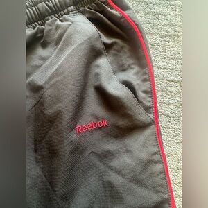 Reebok Sweat Track Pants Black with Red Stripe Mens Size Small. No snags rips or stains.