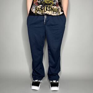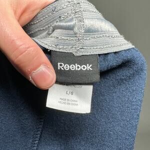 Reebok Sweatpants Navy Blue Polyester Reflective Spellout Logo Baggy Fit