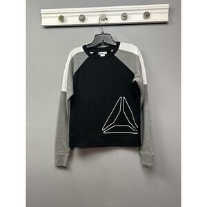 Reebok Sweatshirt Mens Small Black Gray Crewneck Pullover Athletic Logo Tri-Blend