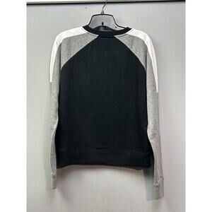 Color block design: black main body with gray and white accented raglan sleeves for added style.