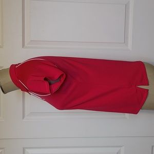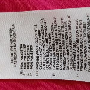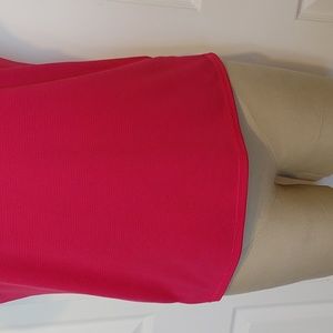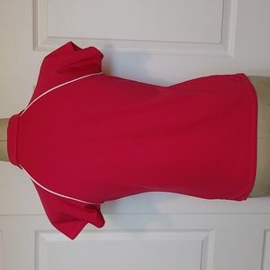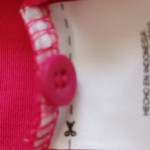 Darker pink polo style top.