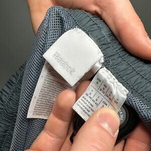 Reebok Track Pants Dark Grey White Spellout Logo Mesh Lined
