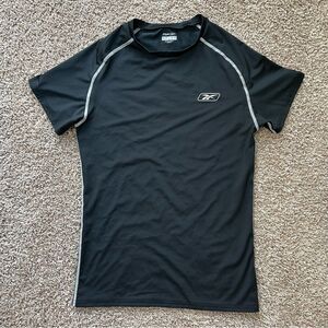 Reebok Training Short Sleeve Shirt. Slim fitting. Contrast stitching. Perfect for lifting at the gym. Excellent condition! Minor cracking to logo on upper back.