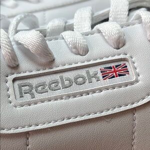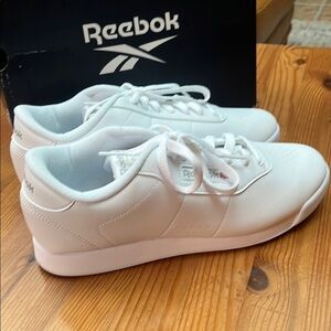 Reebok's white athletic shoes, featuring a sleek low-top silhouette and versatile sneakers offer a clean, minimalist design, perfect for any occasion. New in original box. The box has some wear.