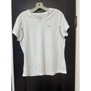 Reebok White V-Neck Performance Activewear Shirt Size Large