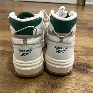 Reebok White and Green Platform Sneakers