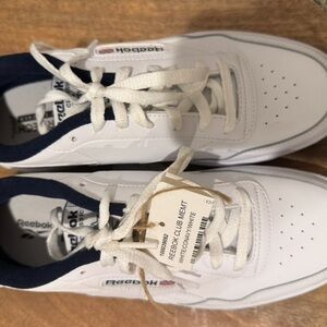 Classic Reebok sneakers with white leather and navy accents. Ideal for everyday style.