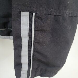 Reebok, Black light weight wind breaker jacket with hood, Size Medium/12, with 100% cotton T-Shirt material inside. 2 outside pockets, waist chincher at the bottom of jacket. Gently used. Great Condition, no rips or tears. See pictures