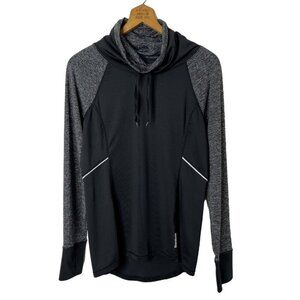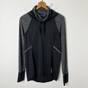 Reebok Women's Athletic Pullover Top M Black & Gray Funnel Cowl Neck Long Sleeve