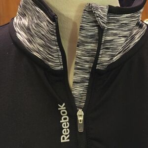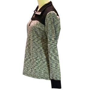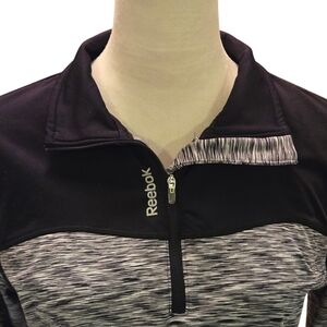 Reebok Women's Black & Mottled Gray Colorblock Quarter-Zip Top Soft Feel Women L