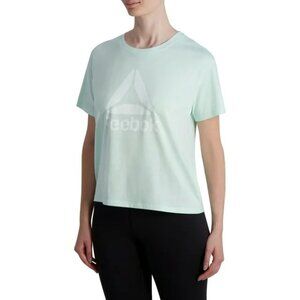 The shirt features a regular fit and is available in size medium. It has short sleeves and is made for women. The black color adds a touch of elegance to the shirt, making it easy to pair with any workout outfit. Whether you're hitting the gym or going for a run, this Reebok shirt is perfect for you. Box F