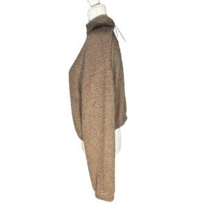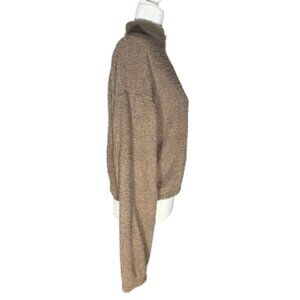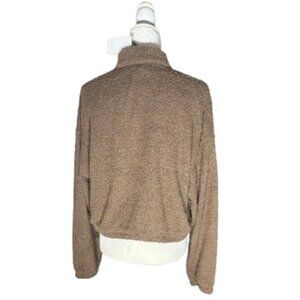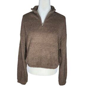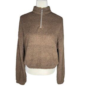 Reebok Women's Brown Cozy Cover Up Pullover Quarter-Zip Fuzzy Sweatshirt Large