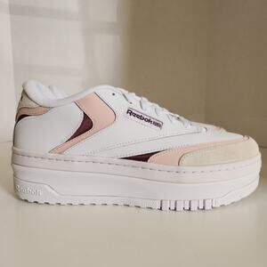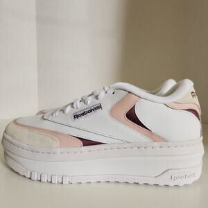 Reebok Women's Club C Extra Sneaker, White/Pink/Maroon, 10.5