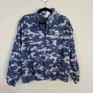 Reebok Womens Essential Long Sleeve 1/4 Zip Camo Windbreaker w/ Pockets Sz L GUC
