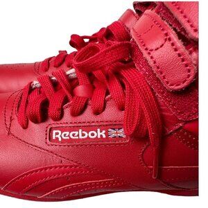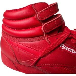Add some fiery fun to your shoe collection with these red hi-top sneakers. With a retro design and Reebok's signature Freestyle Hi style, you'll be turning heads while staying comfortable. Perfect for a casual outing or a playful kick of style.