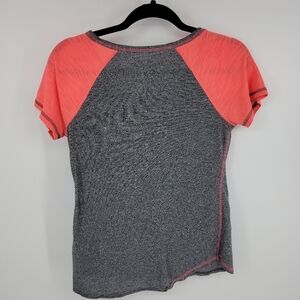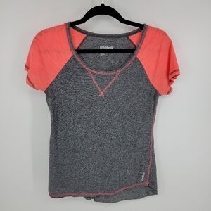 Reebok Womens Gray Activewear Top with Neon Pink Sleeves Size S