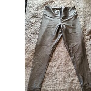 Reebok Womens L Large Shiny Black Athletic Leggings Tights Pants