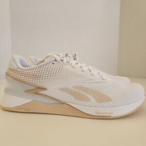 Reebok Women's Nano X3 Cross Trainer, White/Soft Ecru/Aura Orange, 8.5