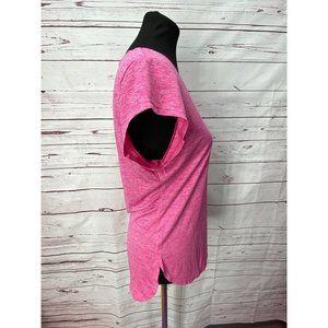 Reebok Women's Pink Space Dye Cap Sleeve Tee Side Logo Slim Fit Size Medium Hi L