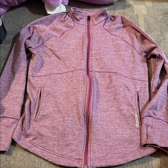 Elevate your look with this Reebok jacket. Features a full zip and side pockets. Ideal for casual wear. In good condition size medium