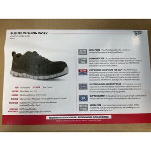 Reebok Work Shoes Women's size 11.5W Composite Toe Athletic Shoe Sublite Cushion Dark Green Wide