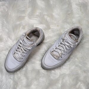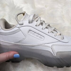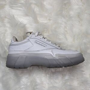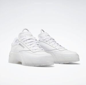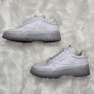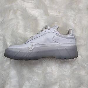 Reebok X Cardi B Club C Platform Chunky Triple White Chalk Sneakers Size 37