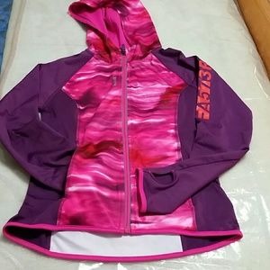 Reebok athletic set leggings and jacket size youth large. Jacket is high low so it covers more in back, has hood, pockets and thumb holes on arms. Comes with matching leggings. Excellent condition.
