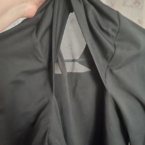 Athletic jacket with mesh on the back near shoulder blade.