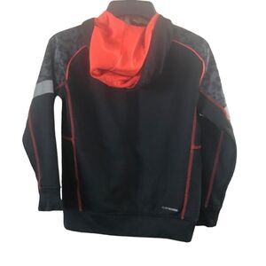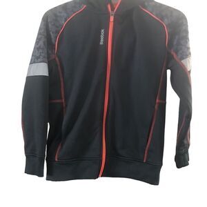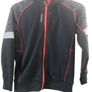 Reebok size small black and orange hoodie boys so hundred percent polyester has inside pockets and outside pockets great condition no issues P80G51