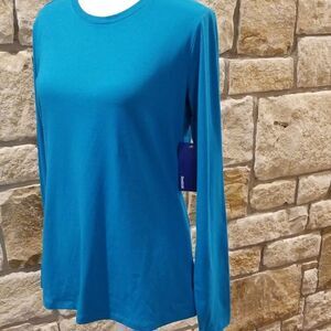 Turquoise blue long sleeve top, no thumb holes, beautiful color.