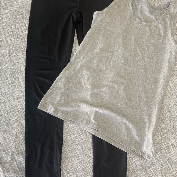 Black Reebok leggings and gray tank top, leggings are XS and top is small, no stains or holes