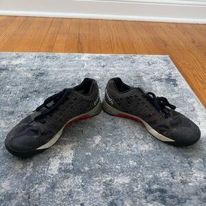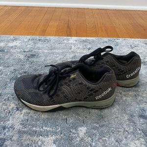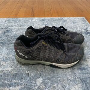 Reebok Crossfit CR5FT Kevlar Nano 05 Sneakers Womens Size 8 (38.5 EURO) Black and Grey colorway. GUC- well loved but still have life in them. Small tear noted to top of right shoe toe box. Tear does not hinder shoe function. See photos for condition of shoes. Offers welcomed.
