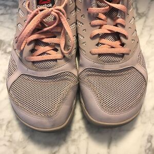These low profile sneakers are in excellent pre-owned condition. They have been worn but have a ton of wear left in them. They are light purple with pink laces. They are absolutely perfect for Crossfit!