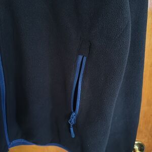 This is new without tags. The color is black. 2 side zipper pockets. One chest zip pocket. The chest is 44 inches, 22 flat. The length is 28 inches with 28 inch sleeves with stretch cuff. The fabric is 100 % polyester fleece and soft shell.