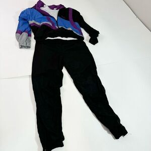 Reebok Jacket Vintage Womens Small Black Blue Vintage Windbreaker Pants Set