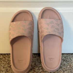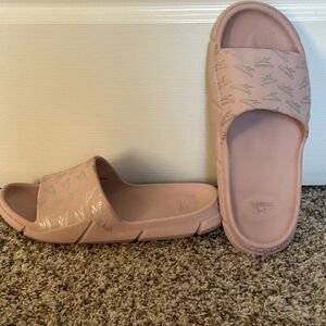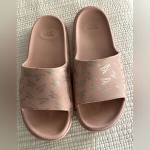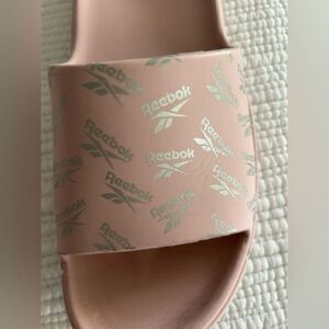 Reebok Women's Pink With Silver Logo Comfort Slide Sandals Size 9