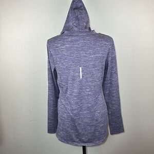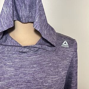 Very good condition, smoke-free. Reebok size medium. Lightweight hooded workout pullover. Has thumb holes. Longer in the back. The color in the photos is pulling much more purple, it is more of a maroon type color than a bright purple.