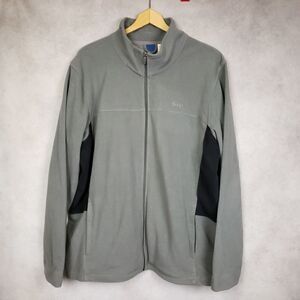 Reebok fleece zippered jacket in excellent preowned condition with no visible signs of wear. Has two pockets. Size XL. Shouder to shoulder 20", pit to pit 25.5", length 30", sleeve 27".