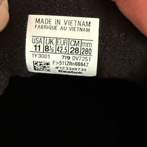 Black with purple and green logo design and white sole