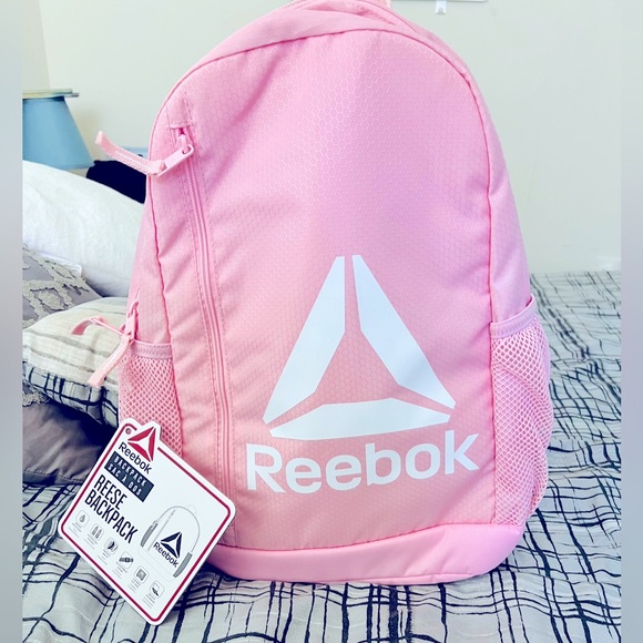 It is a Pink Reebok backpack. Gym sports bag, light hand luggage for the weekend, Casual backpack for travel, beach. It is New