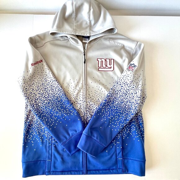 Reebox NY Giants On Field Full Zip Jacket with Hood, NFC East, Gray and Blue, XL