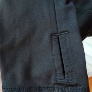 This is a fantastic black and grey pullover top/jacket by Reebok in Excellent Used Condition. Cute contrasting details in the elbows, thumbholes on the sleeves, and small pocket for essentials. This is perfect for running. Size M. This is lightweight but easy to use for layering.