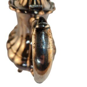 Silver-plated has a patina. Measurements: Height = 10.5 inches, Width spout to handle = 11 inches, Depth = inches.