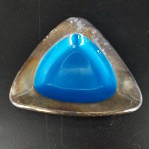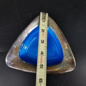 • Silver Plated Triangle Dish with a Cobalt Blue Enamel Center