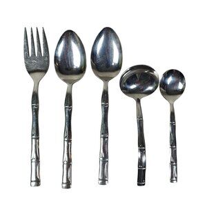 Reed & Barton Bamboo Flatware Serving Hostess Set 5-Piece Stainless Steel Japan