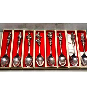 Celebrate the charm of Christmas past with this boxed set of 8 vintage Reed & Barton collector spoons. Each spoon features a sculpted figurine handle—from playful children to festive characters. In their own original boxes, NOS.